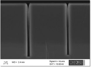 DRIE or DSiE combines isotropic silicon etching and passivation steps repeatedly to obtain anisotropic profiles. Using high density plasma source and fast gas-switching capability, this technique enables you to achieve profile verticality, smooth sidewalls and high etching rates with high selectivity to masking materials.