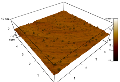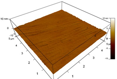 AlGaN surface roughness after 200 ALE cycles, left = before etching (Ra = 600 pm), right = after etching (Ra = 300 pm). The surface has been smoothed by ALE.