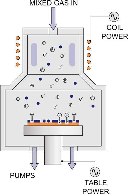 This technique cannot be performed in reactive ion etch systems (RIE), as these have the wrong balance of ions to free radical species. This balance can be achieved in high-density plasma systems (HDP). The most widely used form of HDP uses inductive coupling to generate the high-density plasma region so is known as ‘inductively coupled plasma’ (ICP).