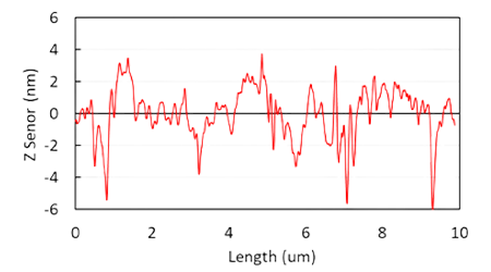 Figure 2. AFM image: after plasma polish (Ra = 0.70 nm).