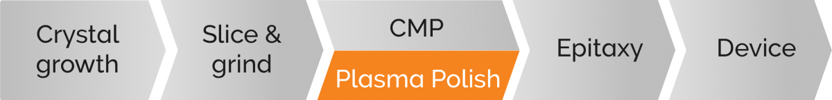 Wafer grinding and CMP require a series of steps utilising varying grit to improve the surface quality. This chemical mechanical process causes strain on the substrate increasing breakage and wafer loss. The particles leave scratches on the surface as it scrapes the SiC. Plasma polish dry etching is a contactless process using ionised gas to remove the silicon carbide selectively, providing high surface quality and minimise substrates damage.