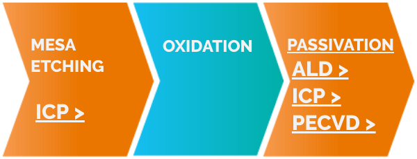 Simplified process flow. Orange processes show solutions covered by Oxford Instruments' technology. ICP Etching is covered by Plasmafab Cobra GaAs VCSEL.
